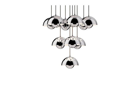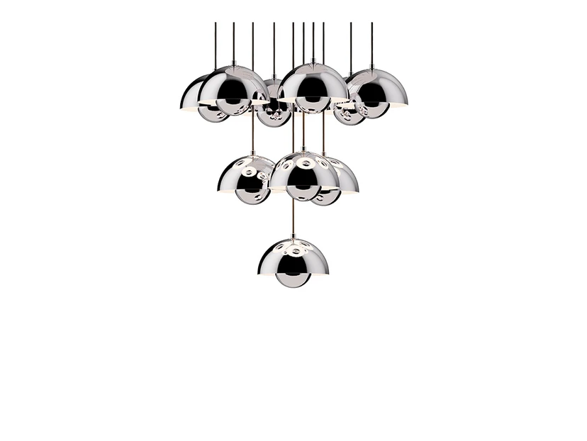 &Tradition představuje lustr Flowerpot VP10 Ø53 v chromovém provedení, který oživuje ikonický design Vernera Pantona. Inspirována jeho imerzivními prostředími, jaká lze vidět v projektech jako Spiegel-Verlag z roku 1969 a instalace „Pantorama“ z roku 1979, řada Flowerpot nyní zahrnuje také nové lustry VP10. Ty lze konfigurovat buď s 10, nebo 31 závěsnými světly, což umožňuje vytvářet působivé světelné instalace.