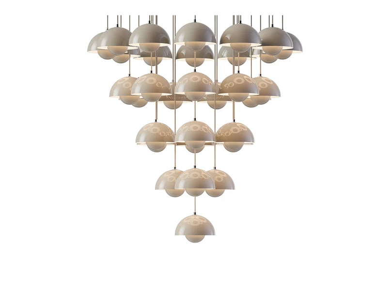 Tato série lustrů spojuje estetiku a funkčnost způsobem, který odpovídá vizi Vernera Pantona o atmosférických a vizuálně podnětných prostorech. Ať už se rozhodnete pro menší konfiguraci 10 závěsných svítidel nebo pro 31 lustrů, lustry Flowerpot VP10 dodají vašemu domovu umělecký nádech.