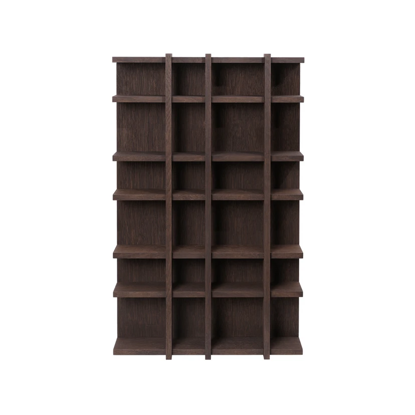 Na polici Tilem můžete vystavit své oblíbené drobnosti – od keramických šálků až po cenné suvenýry. Police je vyrobena z dubového dřeva s certifikátem FSC® Mix a má přihrádky různých velikostí, které poskytují prostor pro řadu předmětů. Diskrétní mezera mezi svislými prvky a zadní stěnou propouští světlo a zároveň poskytuje prostor pro ucha šálků nebo konvic.